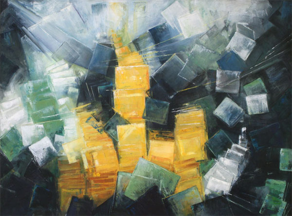 I am interested in perceptions of images - in their supposed accurate representation of the ‘real thing’ and in the manipulation and distortion of images. In my paintings I set out to do a ‘hypertextual’ read of the pixels constructing the image as they fall apart before my eyes: I ‘click on the links’ of colour or movement that catch my eye and paint them. I do this again and again, creating many layers of pixelated perceptions. This process of perception leads to a painting that, ironically has its own materiality and, as Benjamin would call it, its own ‘aura.’ As I post JPEGS of my work online, the process has come full circle or perhaps full pixel...